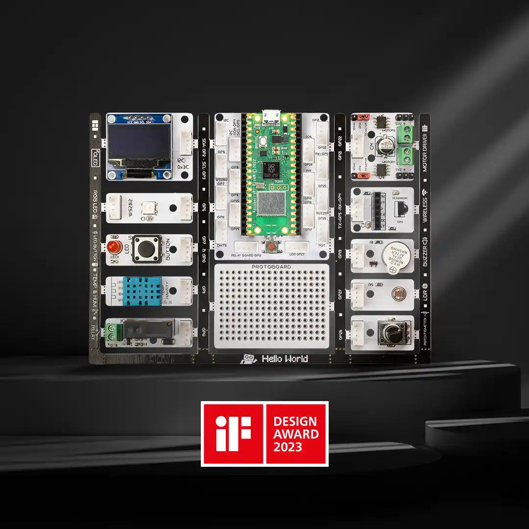 - Protoboard: If you want to install additional components, just connect them to the protoboard.