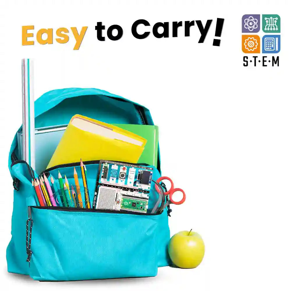 One of the most remarkable features of our product is its portability. This allows you to carry dozens of components on a thin board without the need for extra cables. You can throw it in your bag and take it to school, library or park.