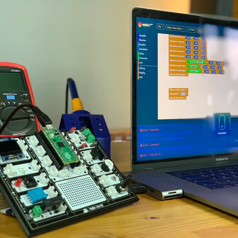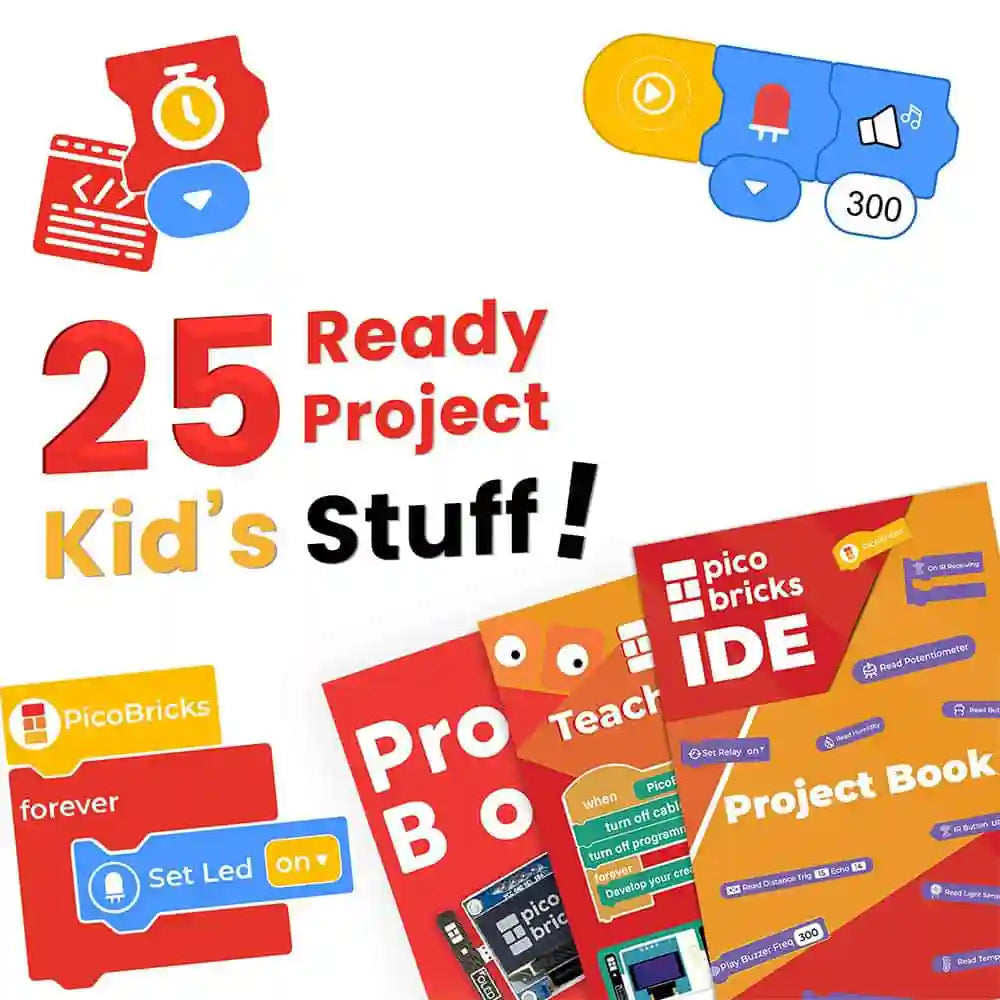 Additionally, since our kits are powered by Raspberry Pi, they can work with all popular IDEs. In this way, you can learn Arduino C or MicroPhyton by purchasing a single product. Such as Microblocks, ThonnyPython, Arduino C, especially BricksIDE. We explain how you can code our projects on these platforms, don't worry.